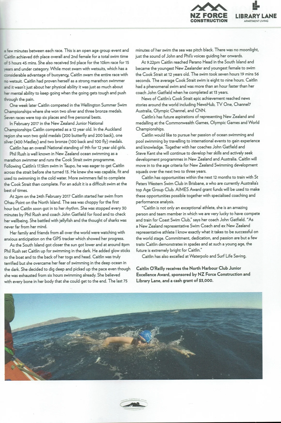 Caitlin was the recipient of a Legends Award for her Cook Strait swim.